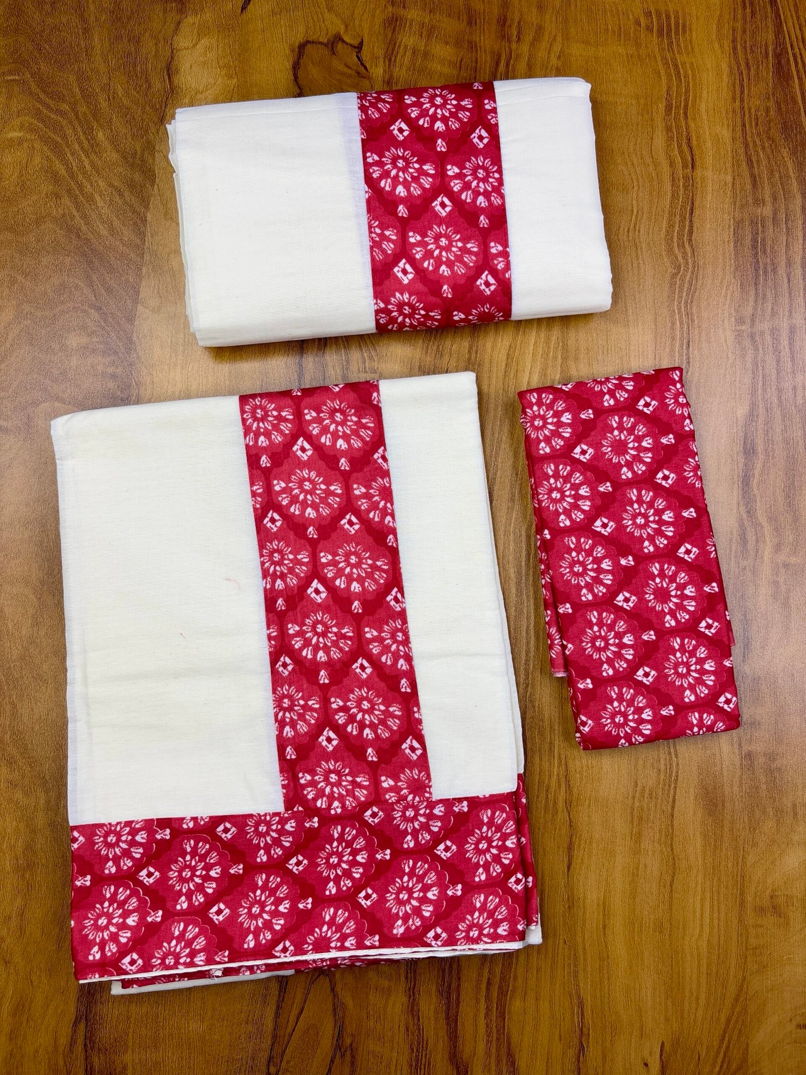 Color: Classic Kerala white with traditional border accents