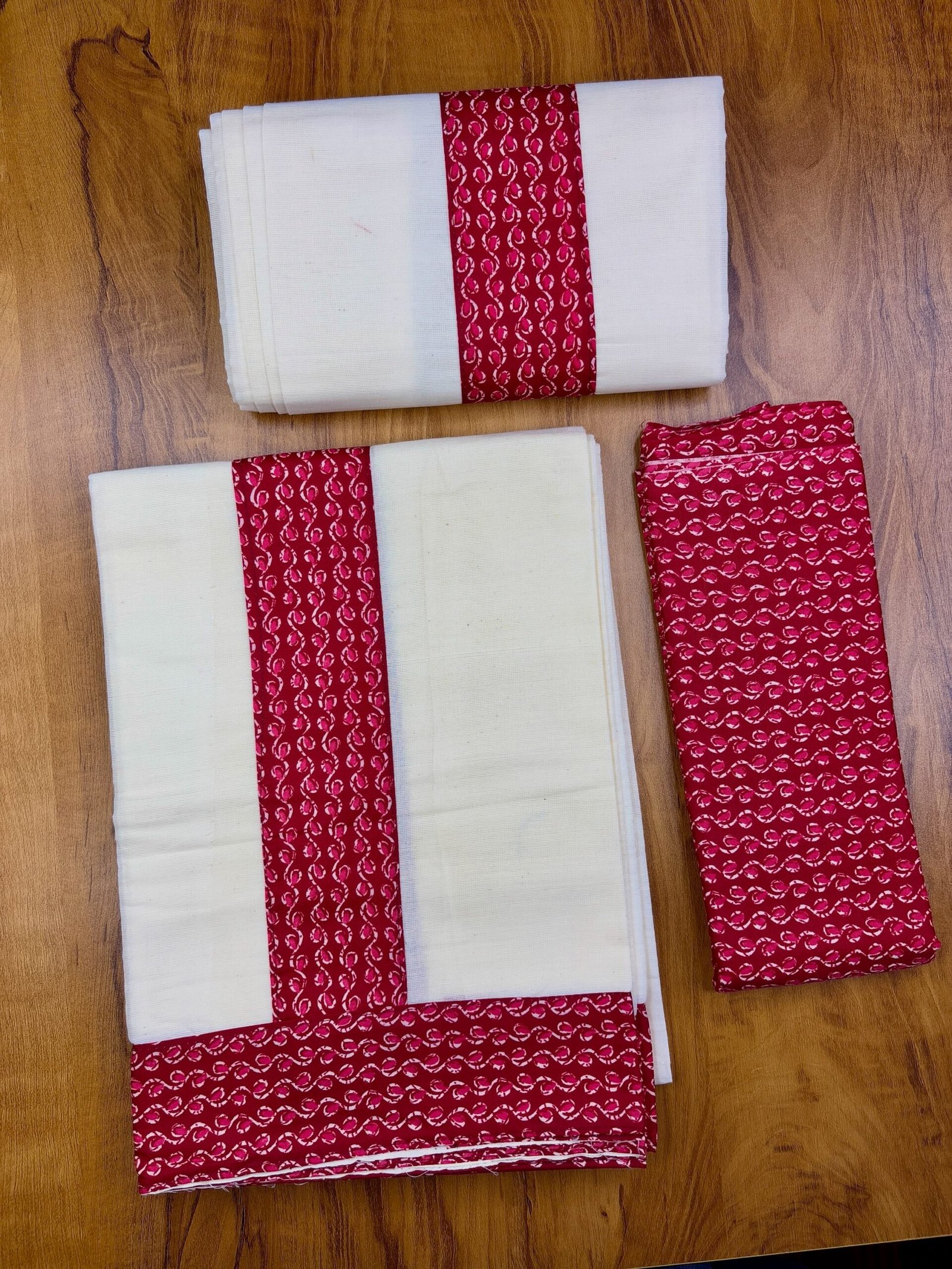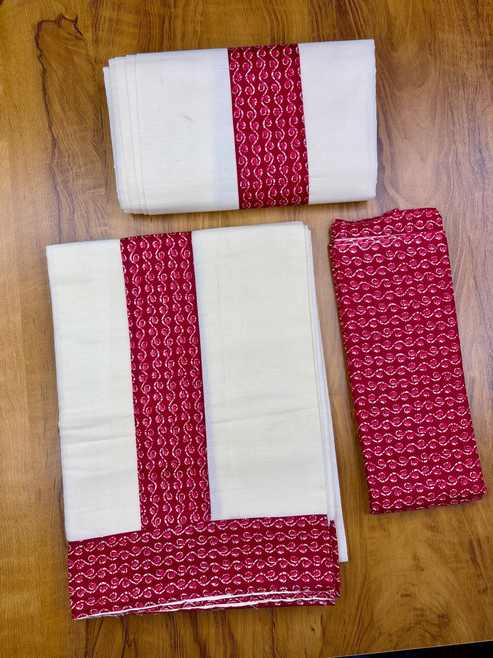 Experience timeless Kerala elegance with our Premium 2 1/4 inch ajarakh print set mund with one mtr blouse material ,crafted from high-quality, soft cotton for superior comfort and durability. This traditional 2-piece attire embodies the grace of Kerala’s cultural heritage, highlighted by the signature 2 1/4 inch ajarakh print set mund with one mtr blouse material that adds a touch of sophistication to your festive and ethnic look.