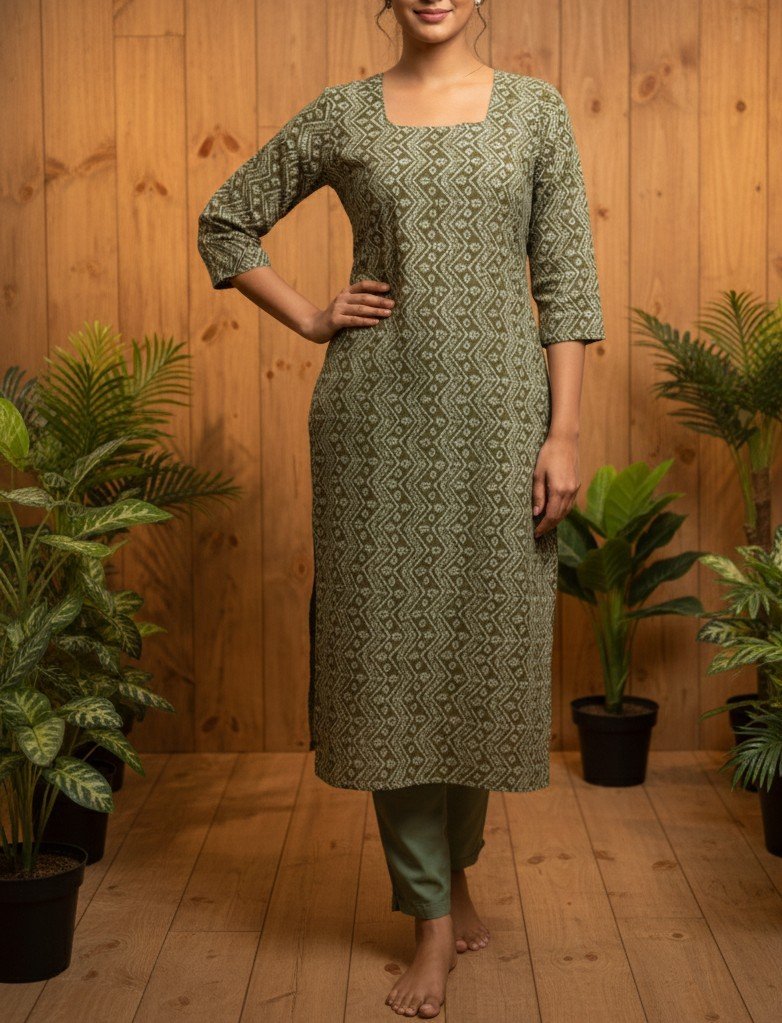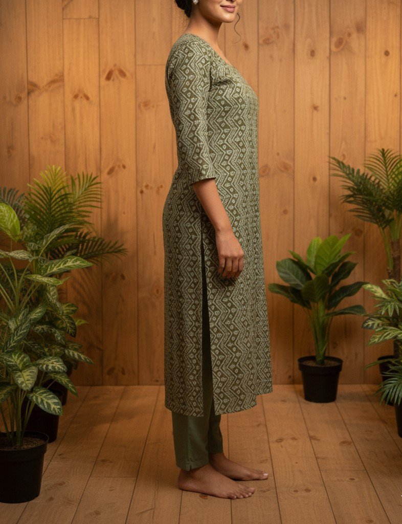 Step into effortless elegance with this beautifully crafted printed kurti. Designed with a soft inner lining for added comfort and a refined finish, it drapes gracefully while maintaining structure. The classic straight silhouette is enhanced with stylish side slits, offering ease of movement and a contemporary touch.