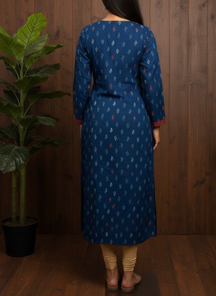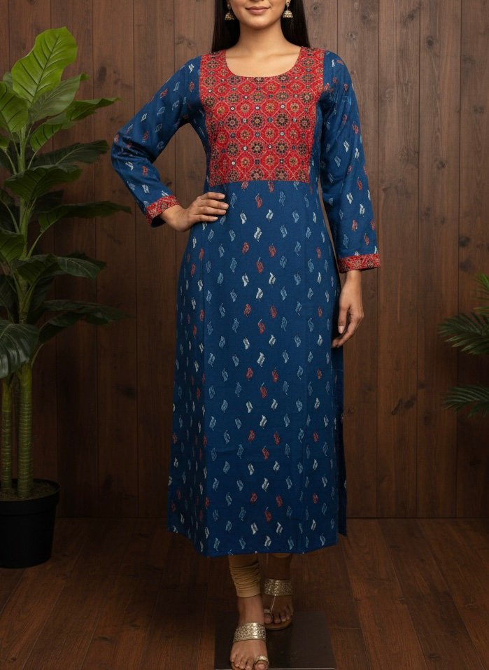 step into effortless elegance with this beautifully crafted printed kurti. Designed with a soft inner lining for added comfort and a refined finish, it drapes gracefully while maintaining structure. The classic straight silhouette is enhanced with stylish side slits, offering ease of movement and a contemporary touch.