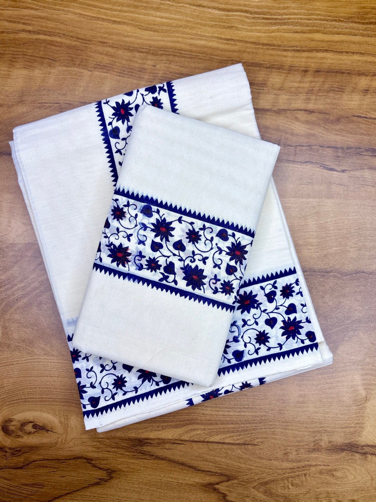 Experience timeless Kerala elegance with our Premium 3 inch floral print Cotton Set Mund, crafted from high-quality, soft cotton for superior comfort and durability. This traditional 2-piece attire embodies the grace of Kerala’s cultural heritage, highlighted by the signature 3 inch floral print border that adds a touch of sophistication to your festive and ethnic look.