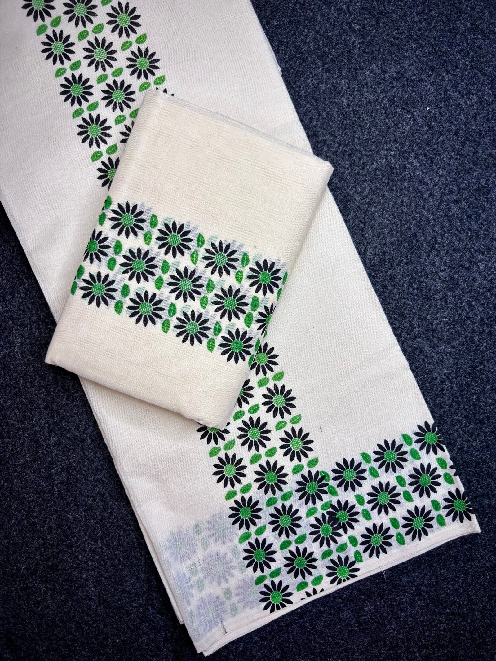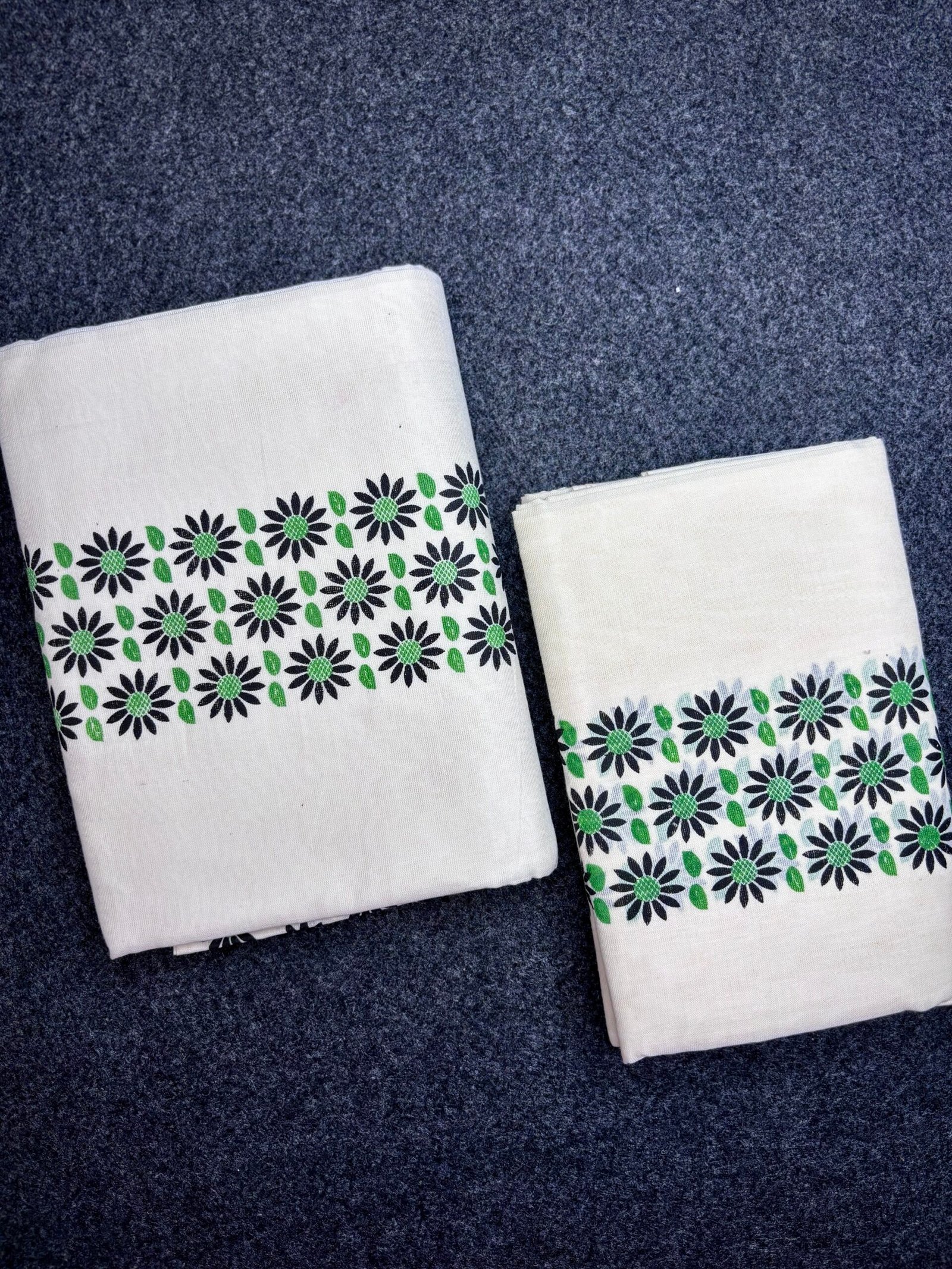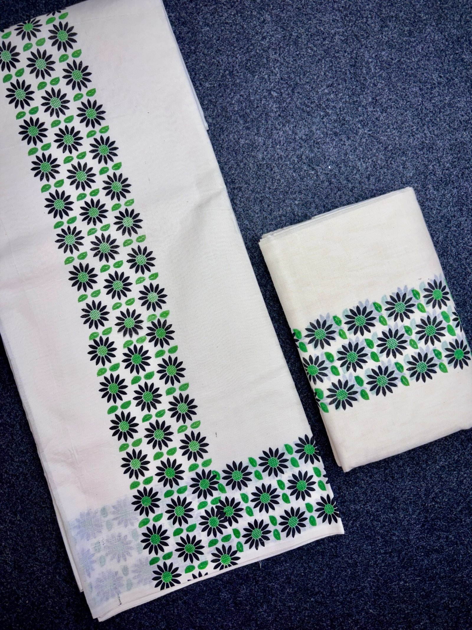 Experience timeless Kerala elegance with our Premium 3 inch floral print Cotton Set Mund, crafted from high-quality, soft cotton for superior comfort and durability. This traditional 2-piece attire embodies the grace of Kerala’s cultural heritage, highlighted by the signature 3 inch floral print border that adds a touch of sophistication to your festive and ethnic look.