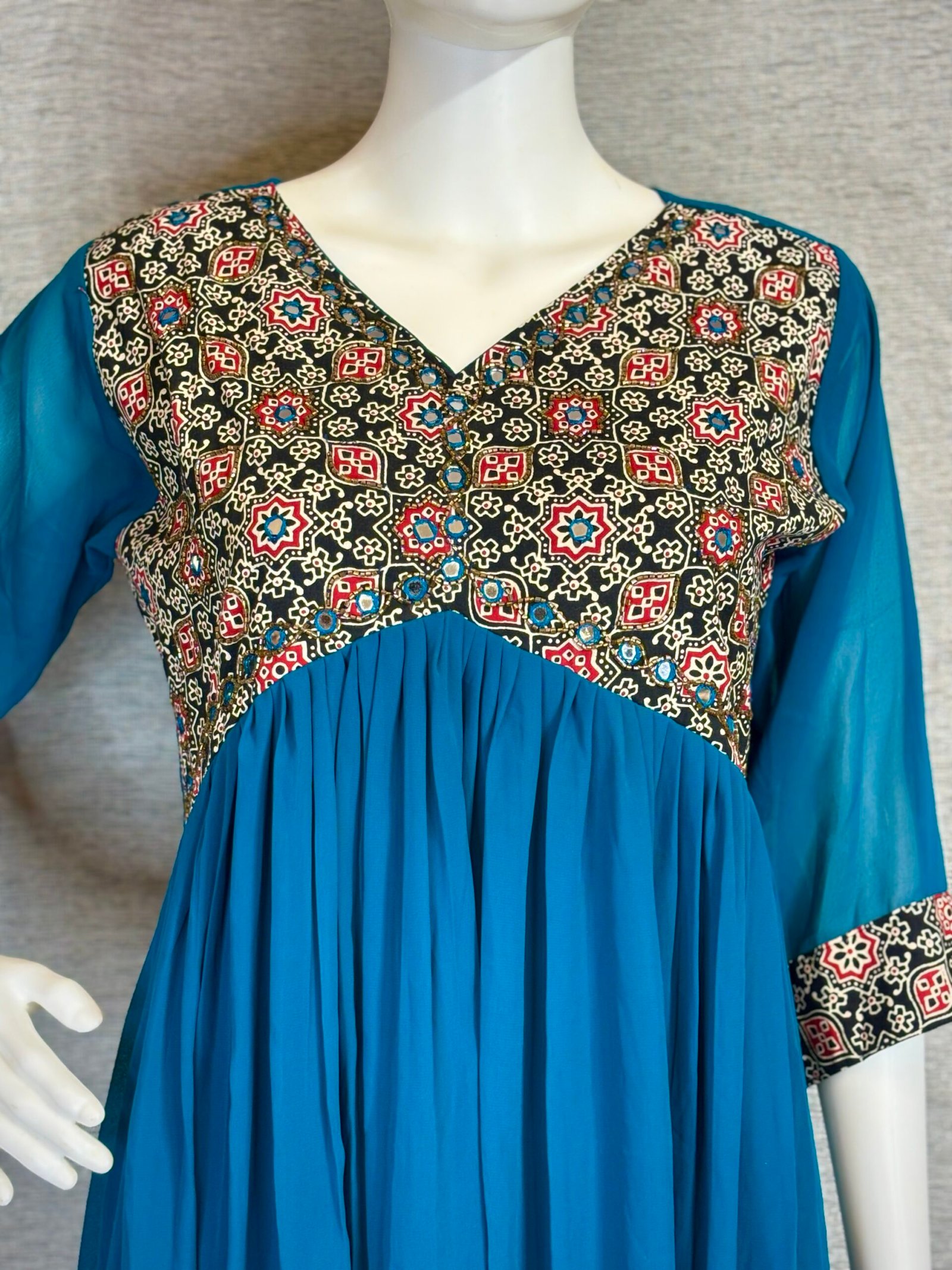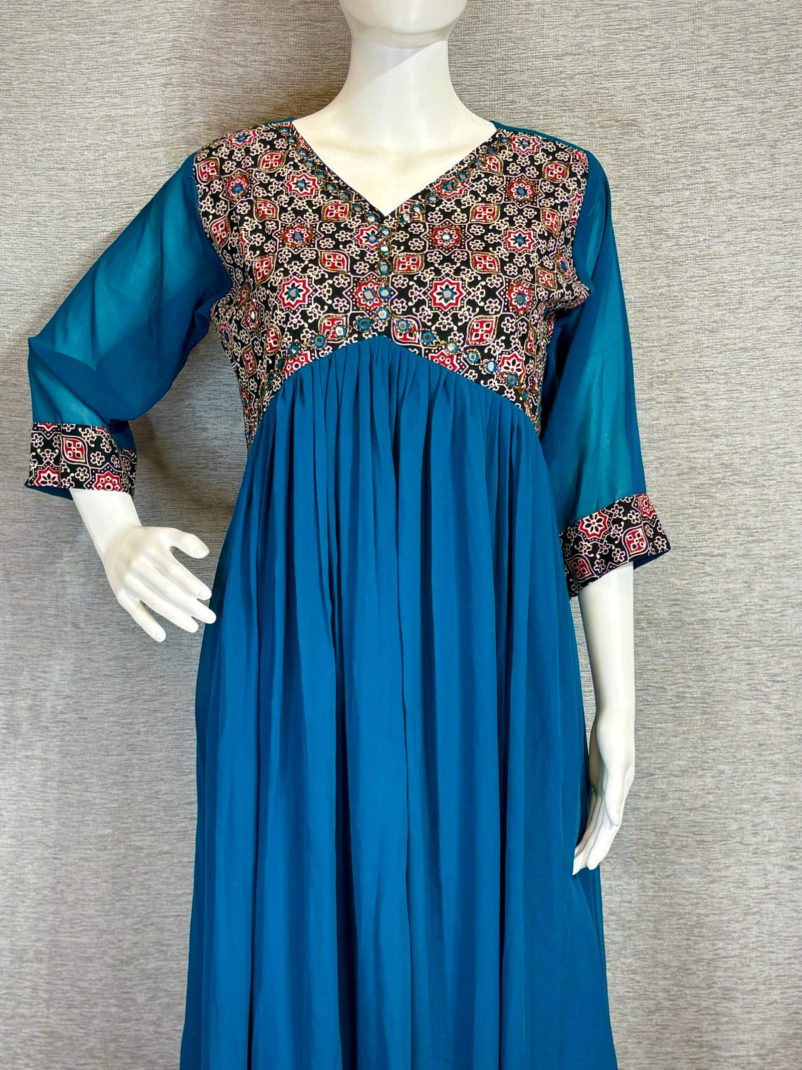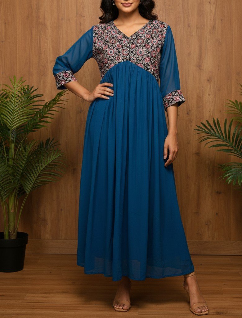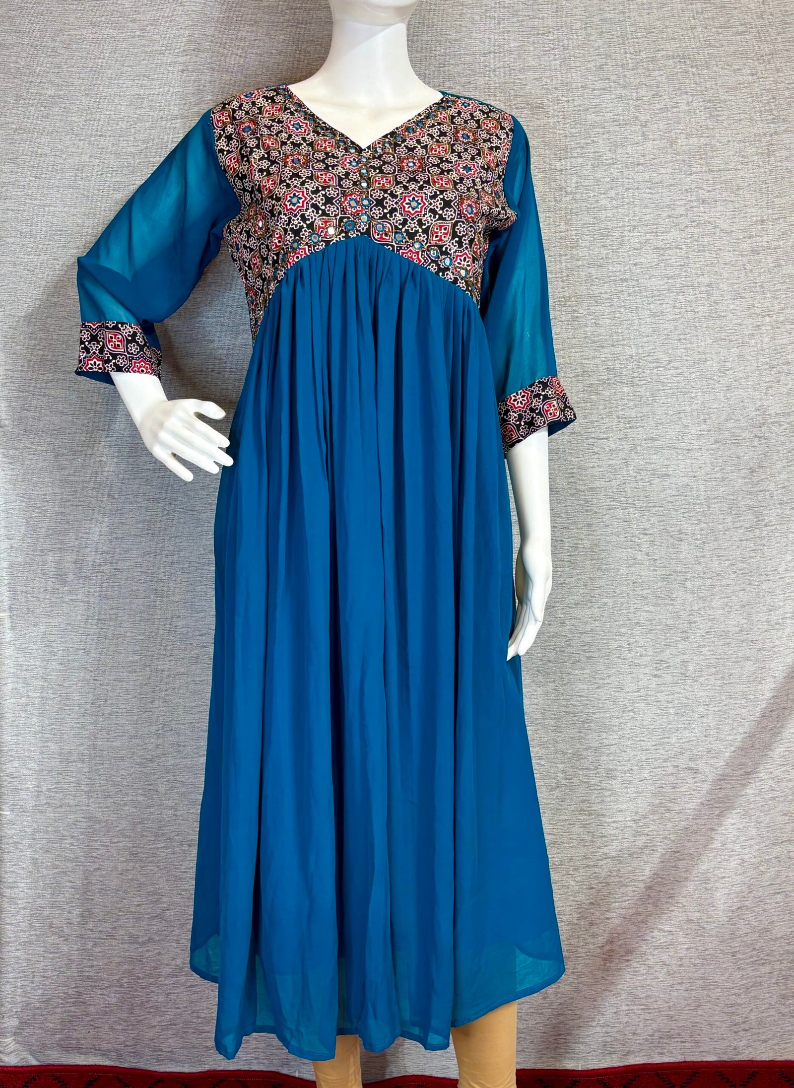 Bring home a blend of comfort, style, and tradition with this stunning georgette A-line kurti!