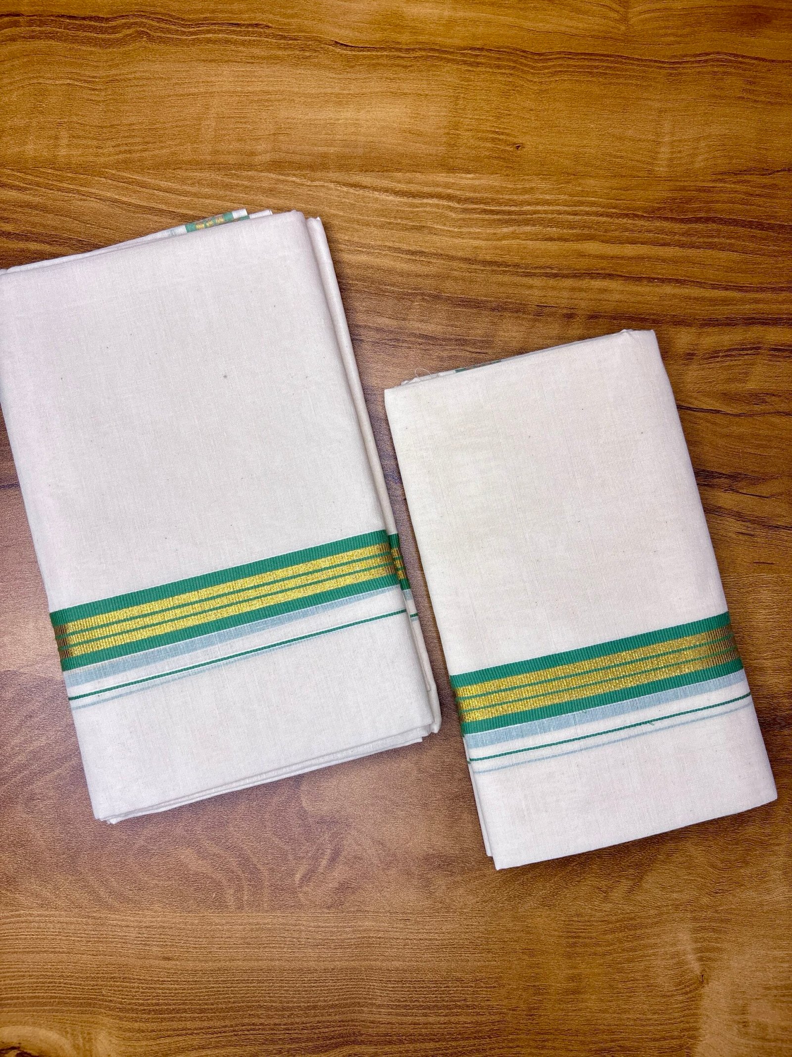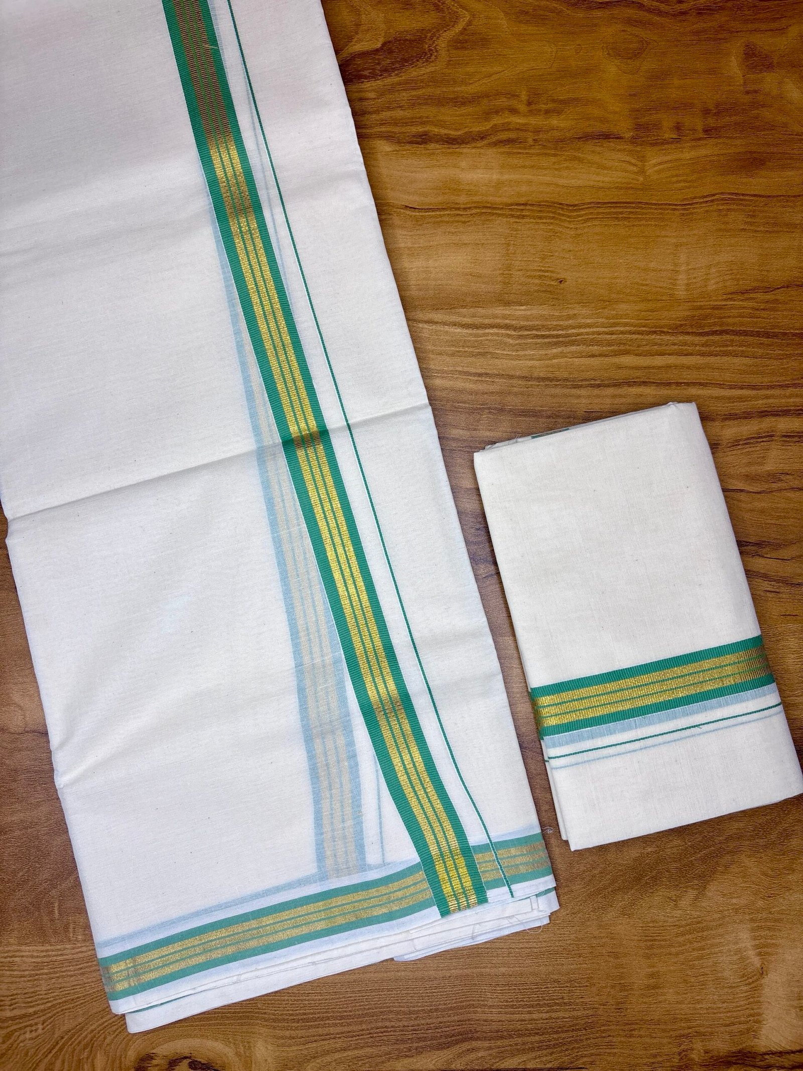 Color: Classic Kerala white with traditional border accents(Golden-Dark Green)