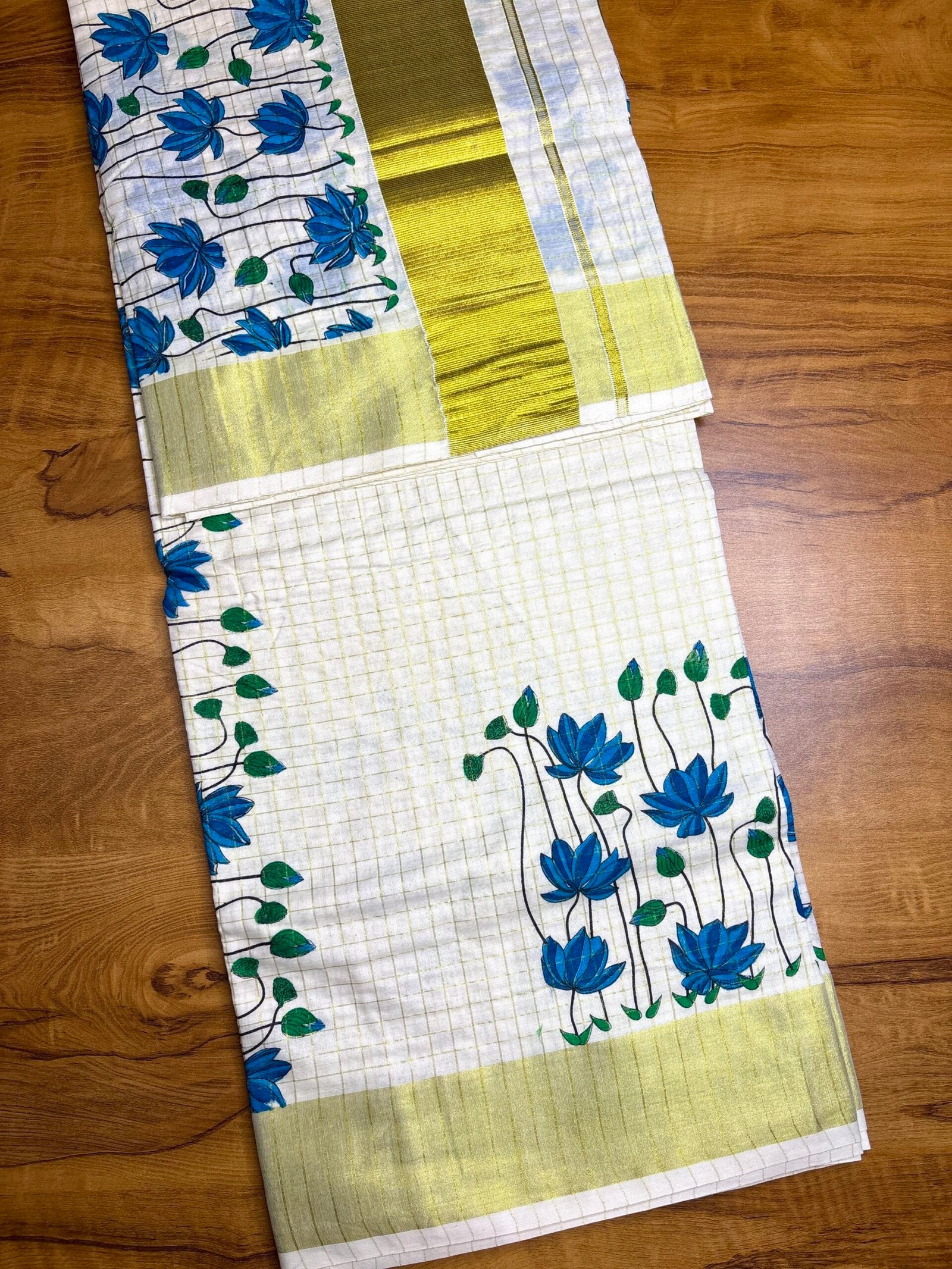 Authentic Kuthampully Kerala Saree – Embrace the rich heritage of South India with our traditional Kasavu saree.