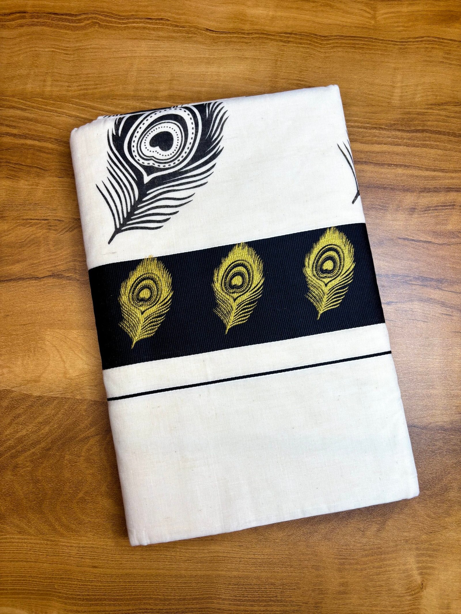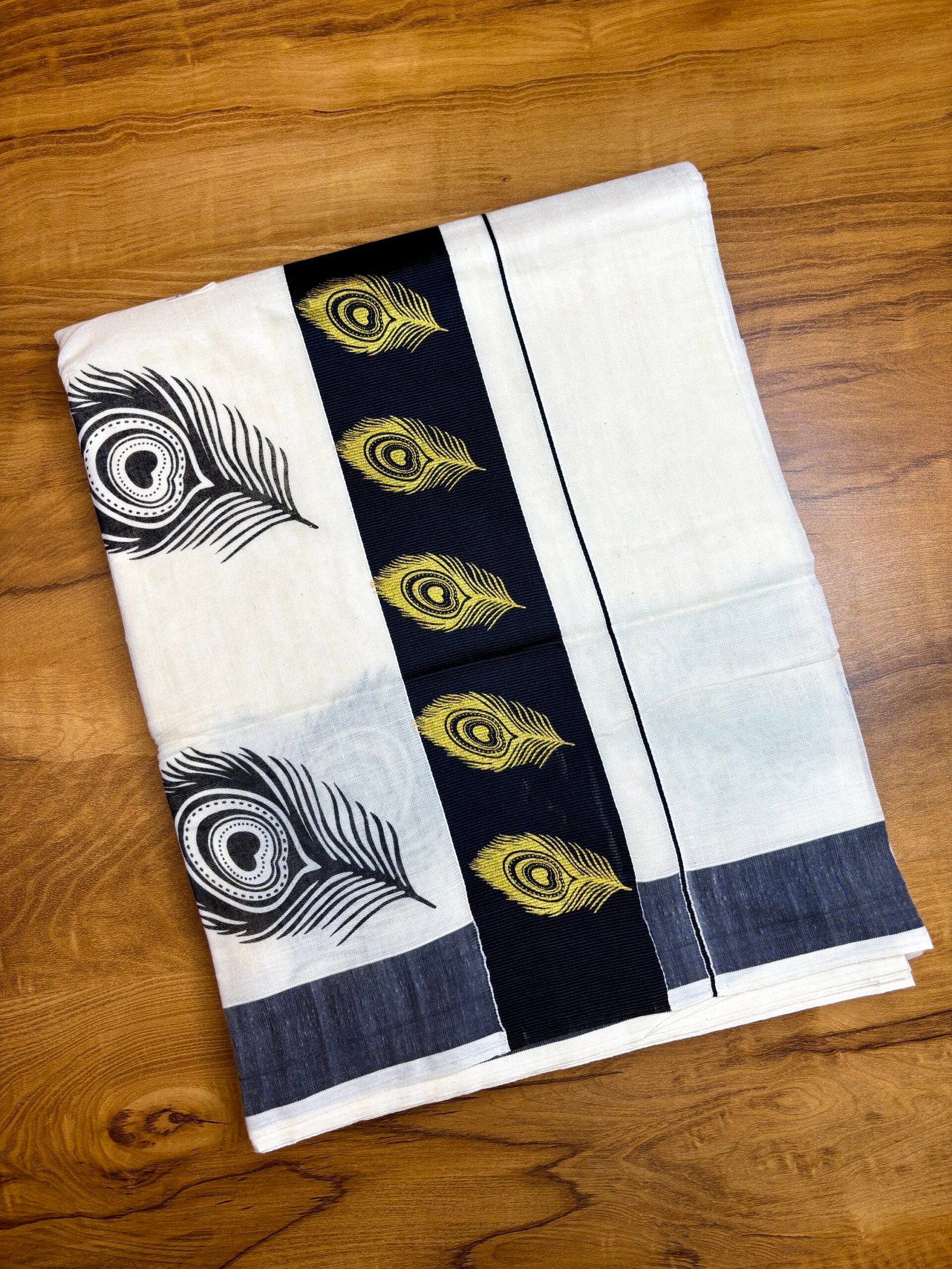 Set saree with Mayilpeeli print and 2.5 Inch kattikara