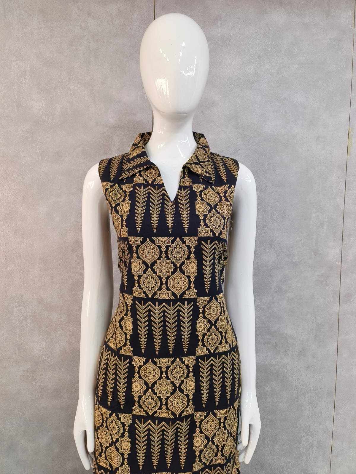The top features a smart shirt collar neck with a sleeveless design, giving it a modern and structured look. The slitted pattern adds ease of movement and a flattering silhouette, while the inner lining ensures added comfort and confidence.