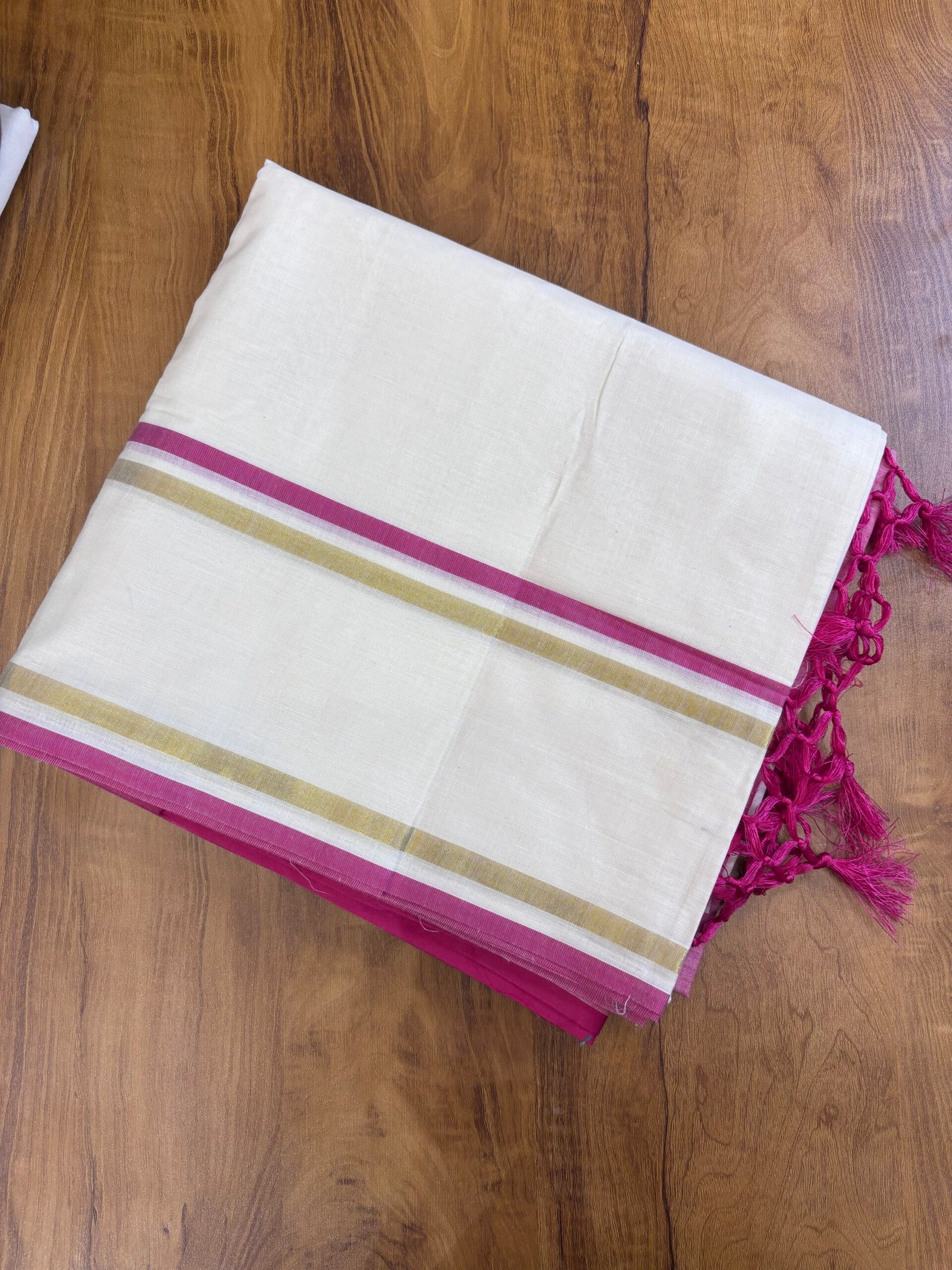 Premium Mul Cotton Saree with Elegant Contrast Border & Tassels – Lightweight, Breathable & Comfortable Pink