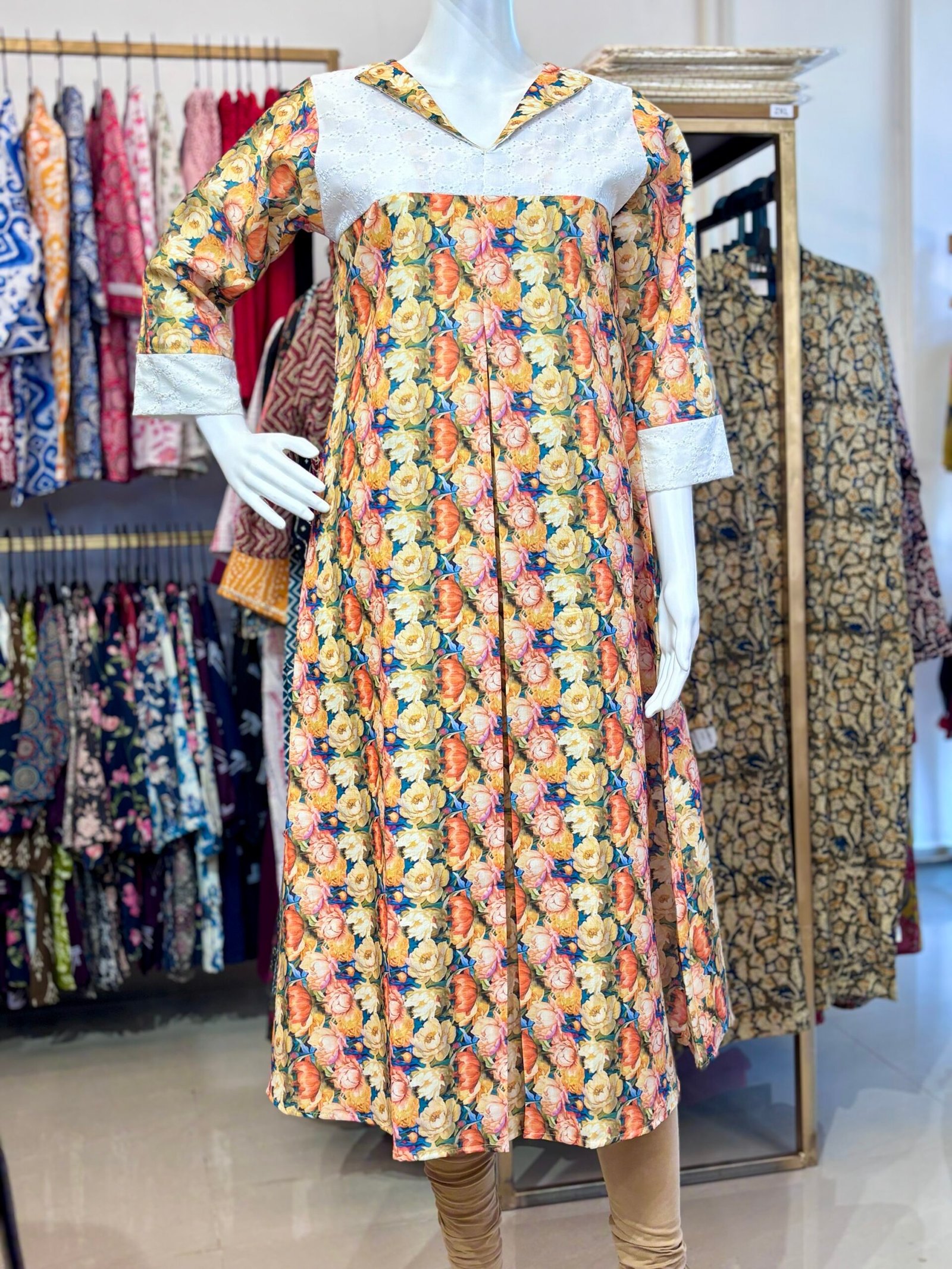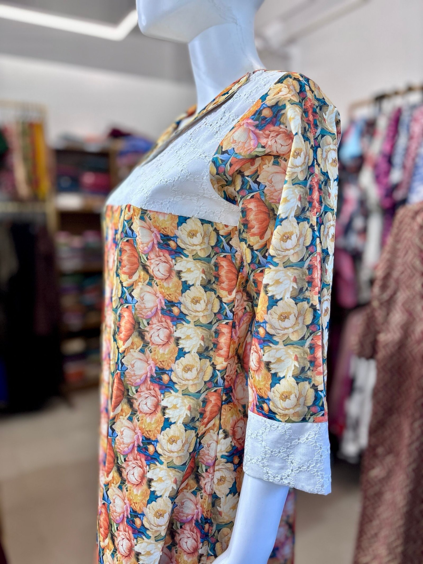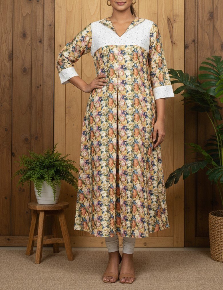 Be the first to review “Linen Hakoba Floral Print A line Kurti (1253B)”