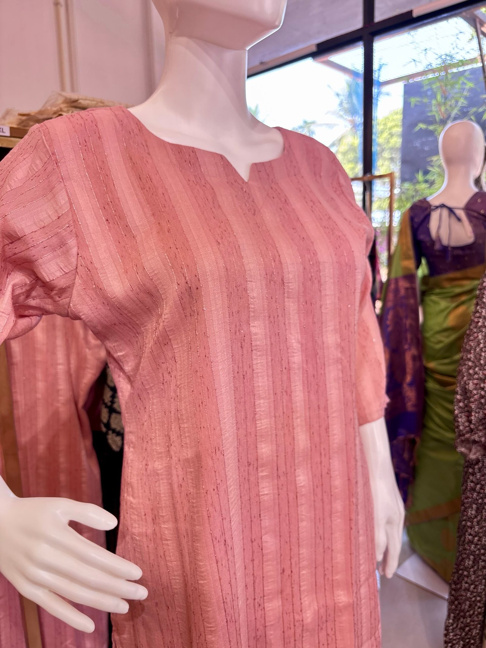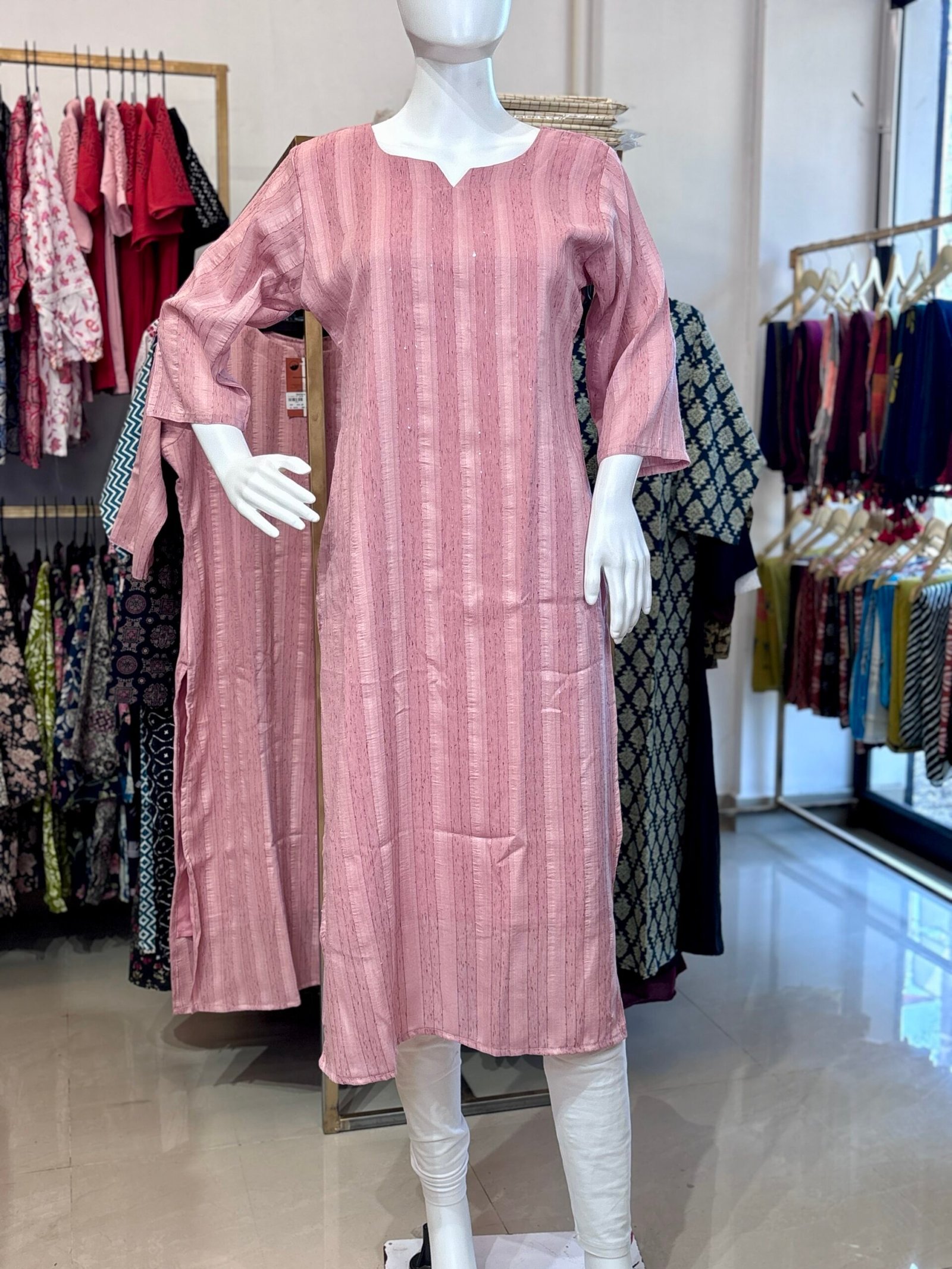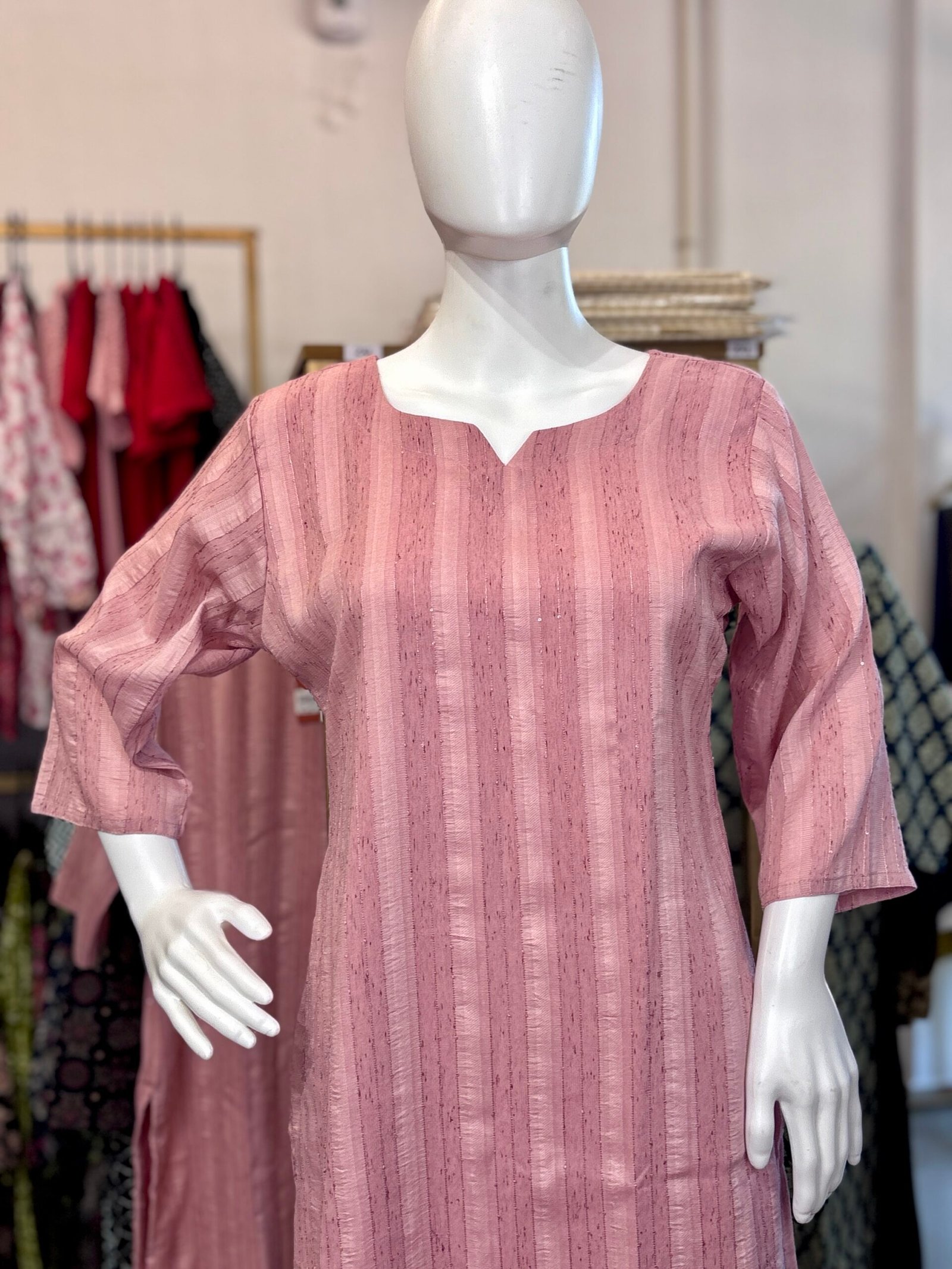 Elevate your daily ethnic wardrobe with this sophisticated mauve-pink kurti. Designed for the modern woman who values both comfort and style, this piece features a subtle vertical self-stripe pattern that adds texture and depth without being overwhelming. Whether you’re heading to the office, a casual brunch, or a festive gathering, this kurti offers a polished, effortless look.