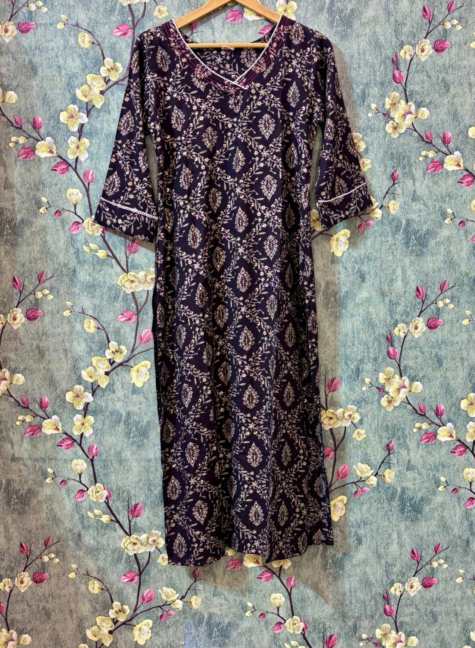 Step into effortless elegance with this beautifully crafted printed kurti. Designed with comfort and a refined finish, it drapes gracefully while maintaining structure. The classic straight silhouette is enhanced with stylish side slits, offering ease of movement and a contemporary touch.