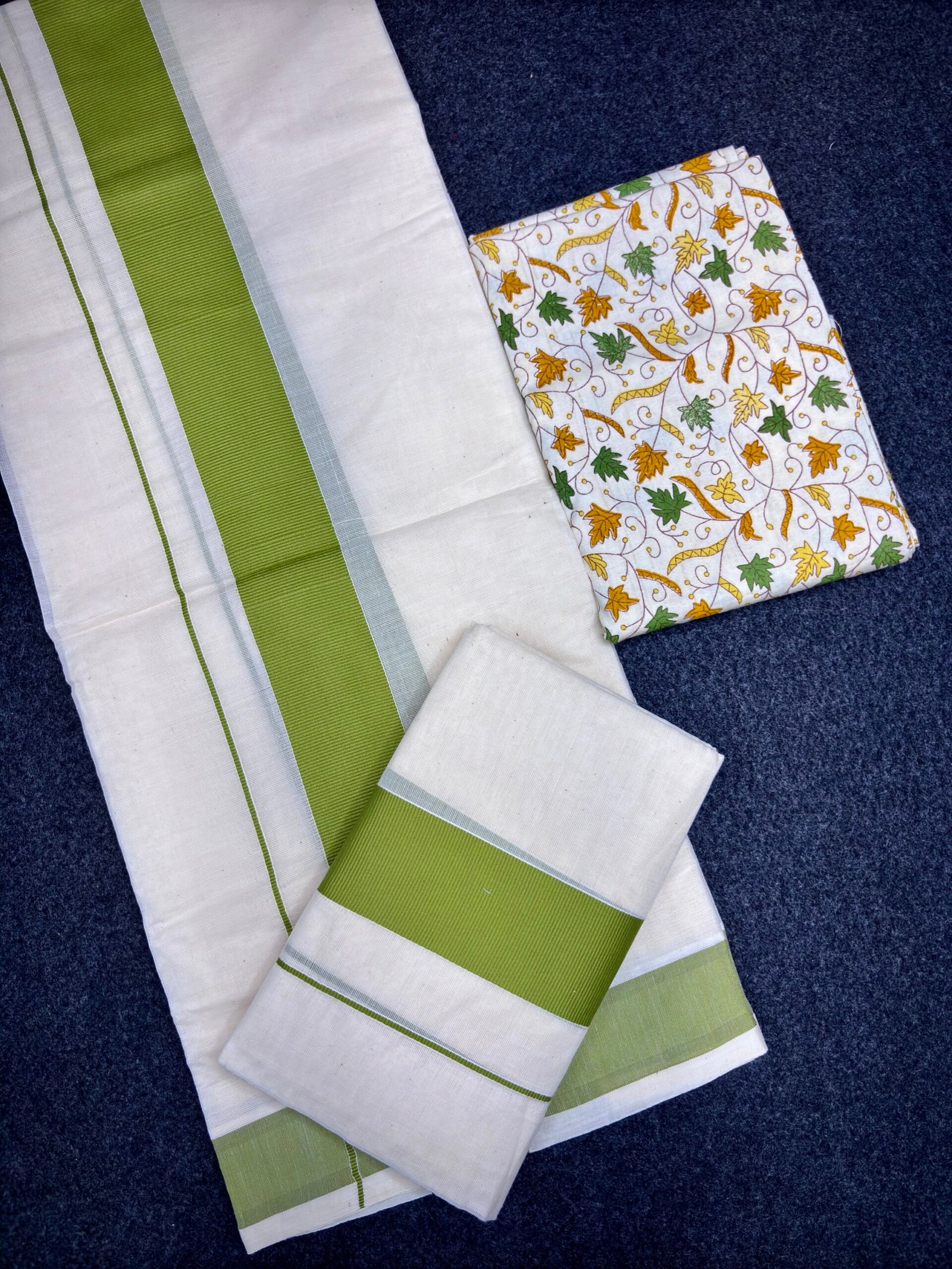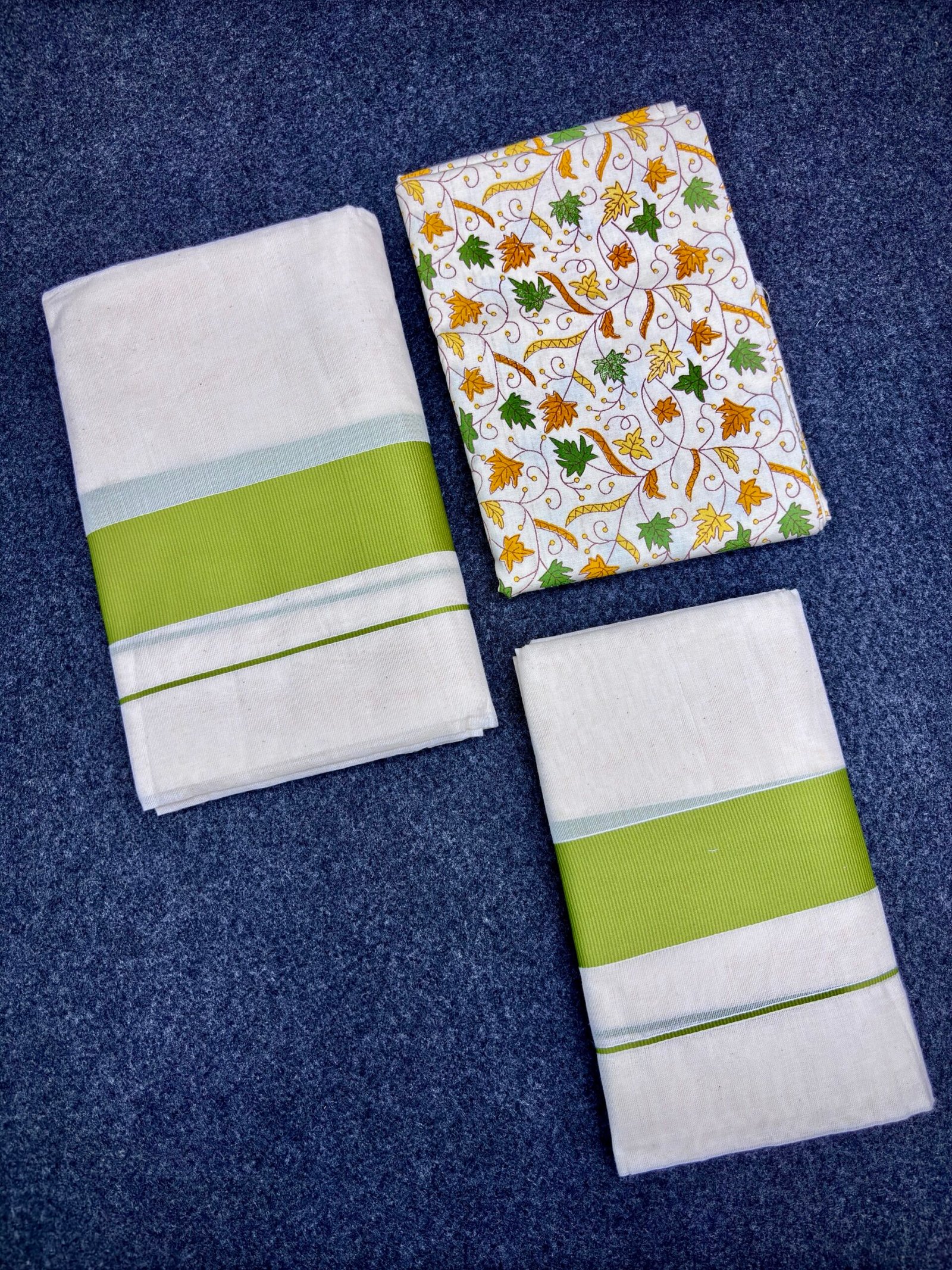 Be the first to review “കട്ടിക്കര-Kattikara set mund-Blouse material Green Lite”