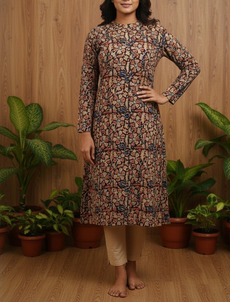 Upgrade your ethnic wardrobe with this women’s casual Kalamkari kurta, designed for comfort and everyday elegance. Made from soft, breathable fabric, this kurta features traditional Kalamkari prints that add a classic and timeless appeal.