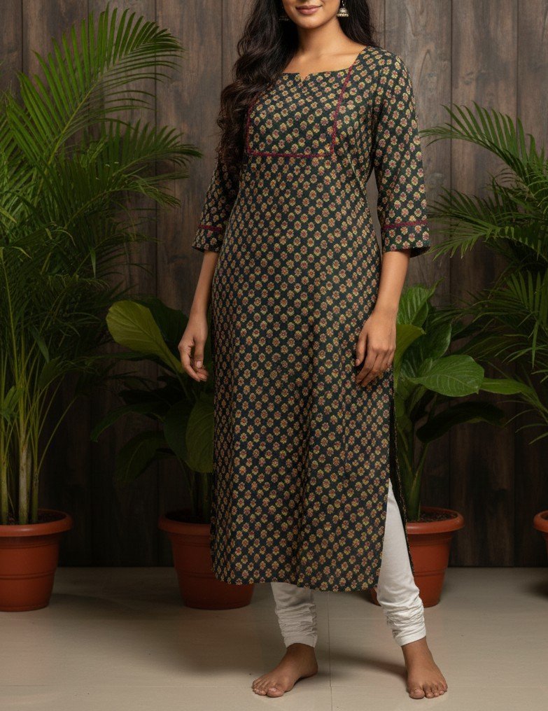Step into effortless elegance with this beautifully crafted printed kurti. Designed with a soft inner lining for added comfort and a refined finish, it drapes gracefully while maintaining structure. The classic straight silhouette is enhanced with stylish side slits, offering ease of movement and a contemporary touch.