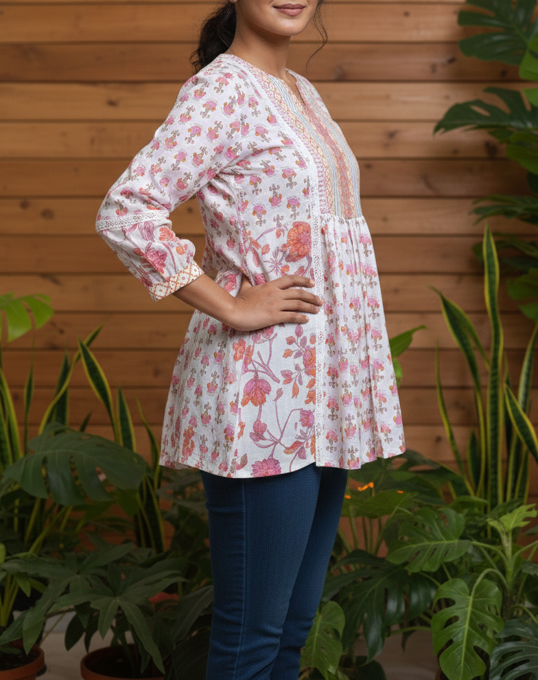 Peplum cotton short kurti, peplum kurti for women, cotton kurti top, short kurti for jeans, casual wear kurti, office wear kurti for women, college wear kurti, Indo-western top for women, summer cotton kurti, peplum top ethnic, fusion wear tops.