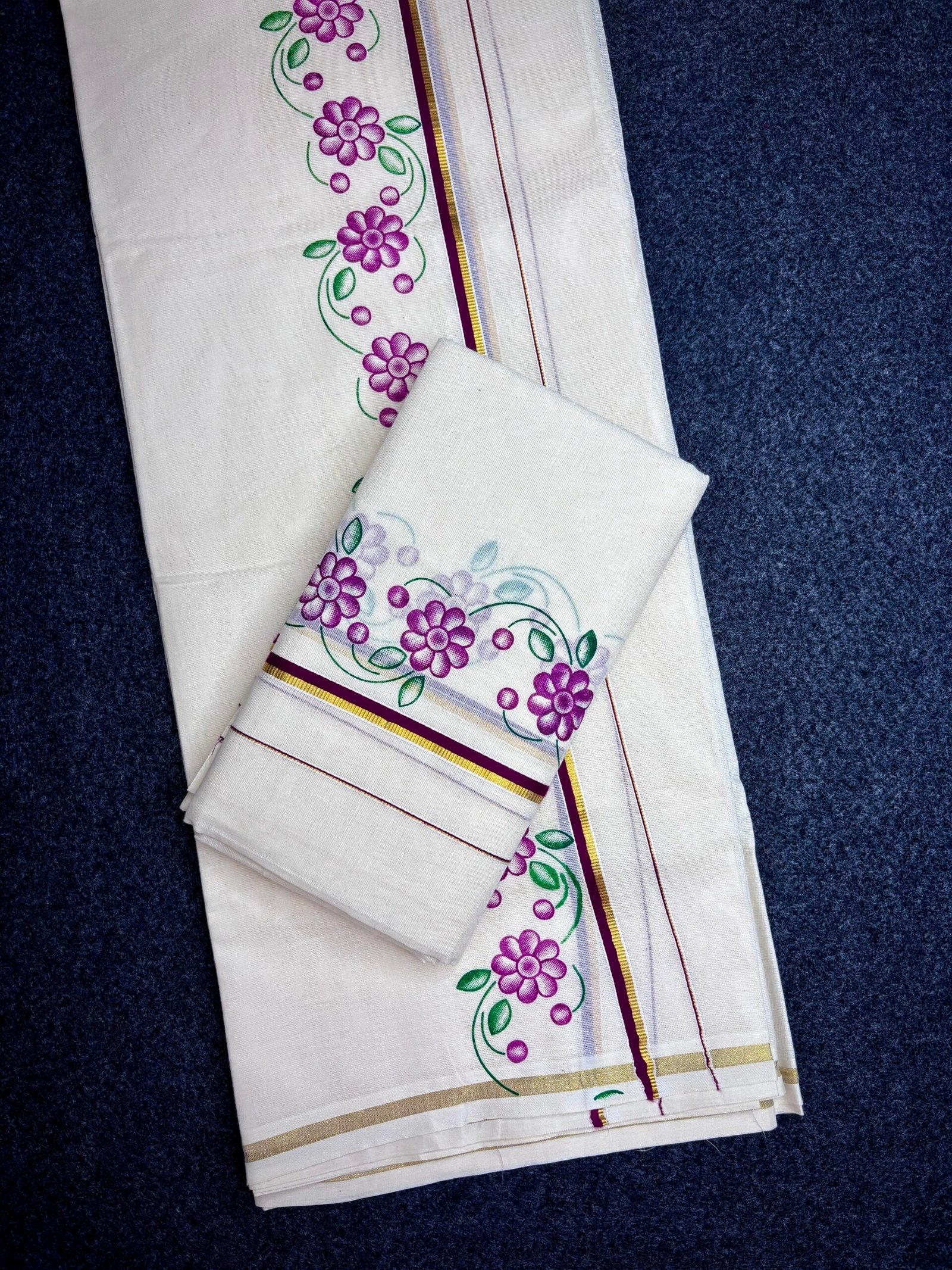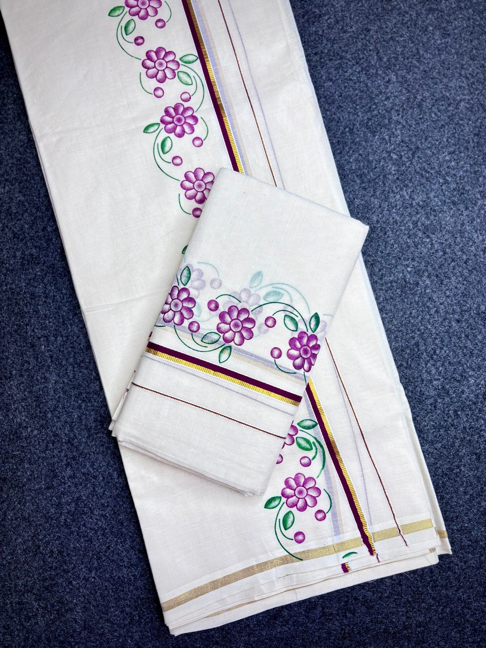 Be the first to review “Floral print Puliyilakara set mund 2.80 mtr C (code 1450)”