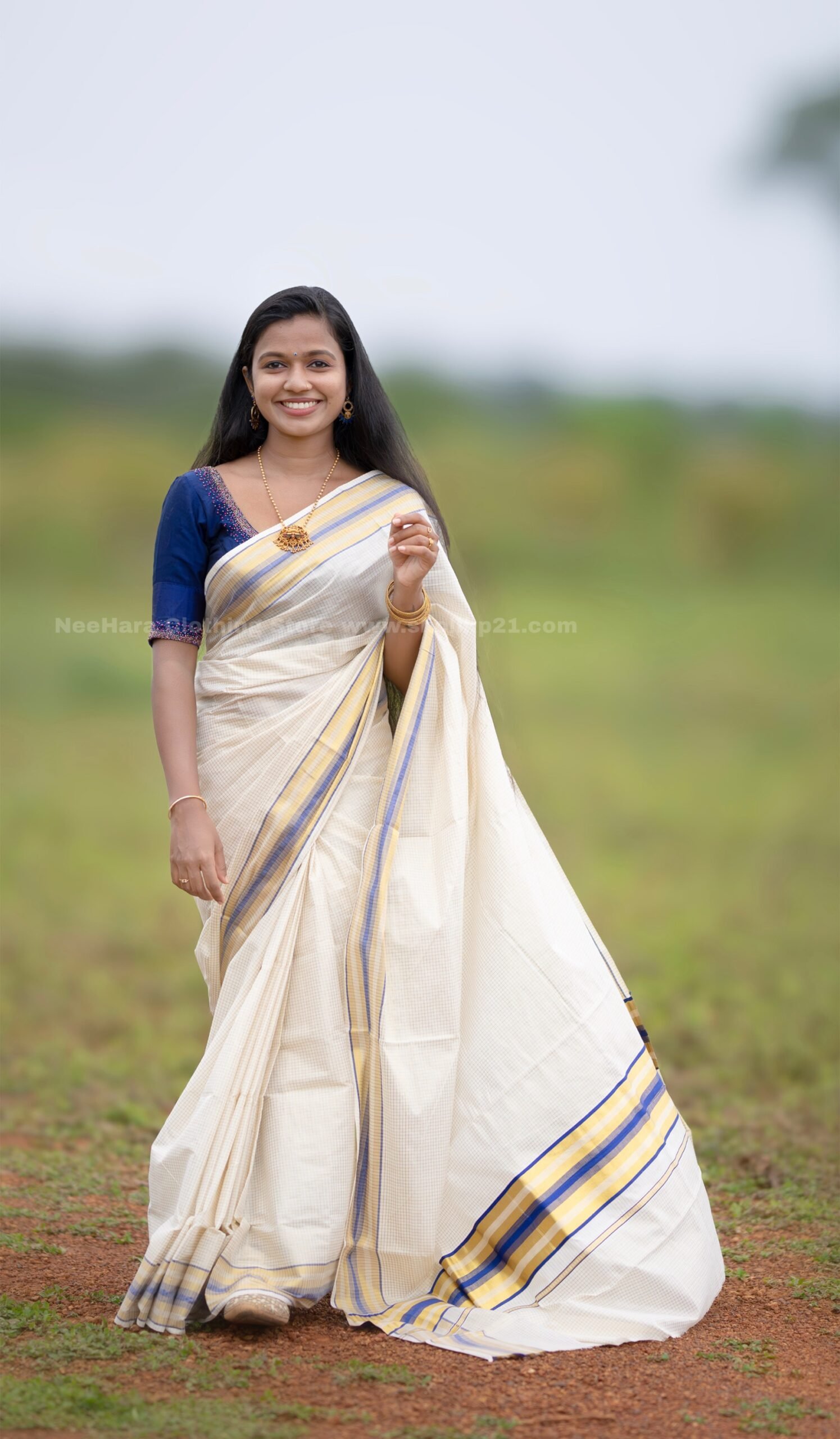 Authentic Kuthampully Kerala Saree – Embrace the rich heritage of South India with our traditional Kasavu saree.