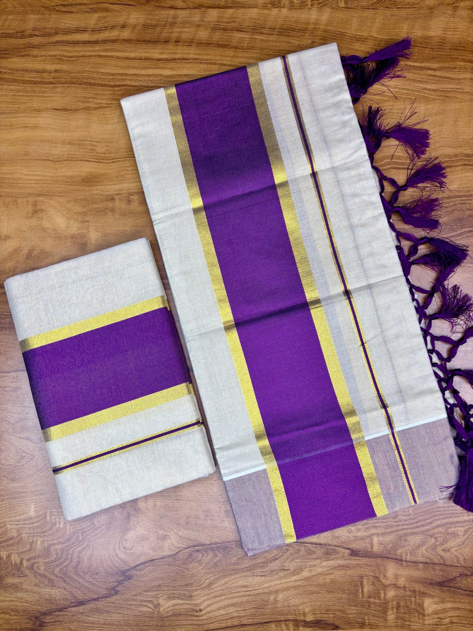 Perfect for festivals, temple visits, and cultural celebrations, this set mund combines traditional artistry with everyday comfort — making it a must-have addition to your ethnic collection.
