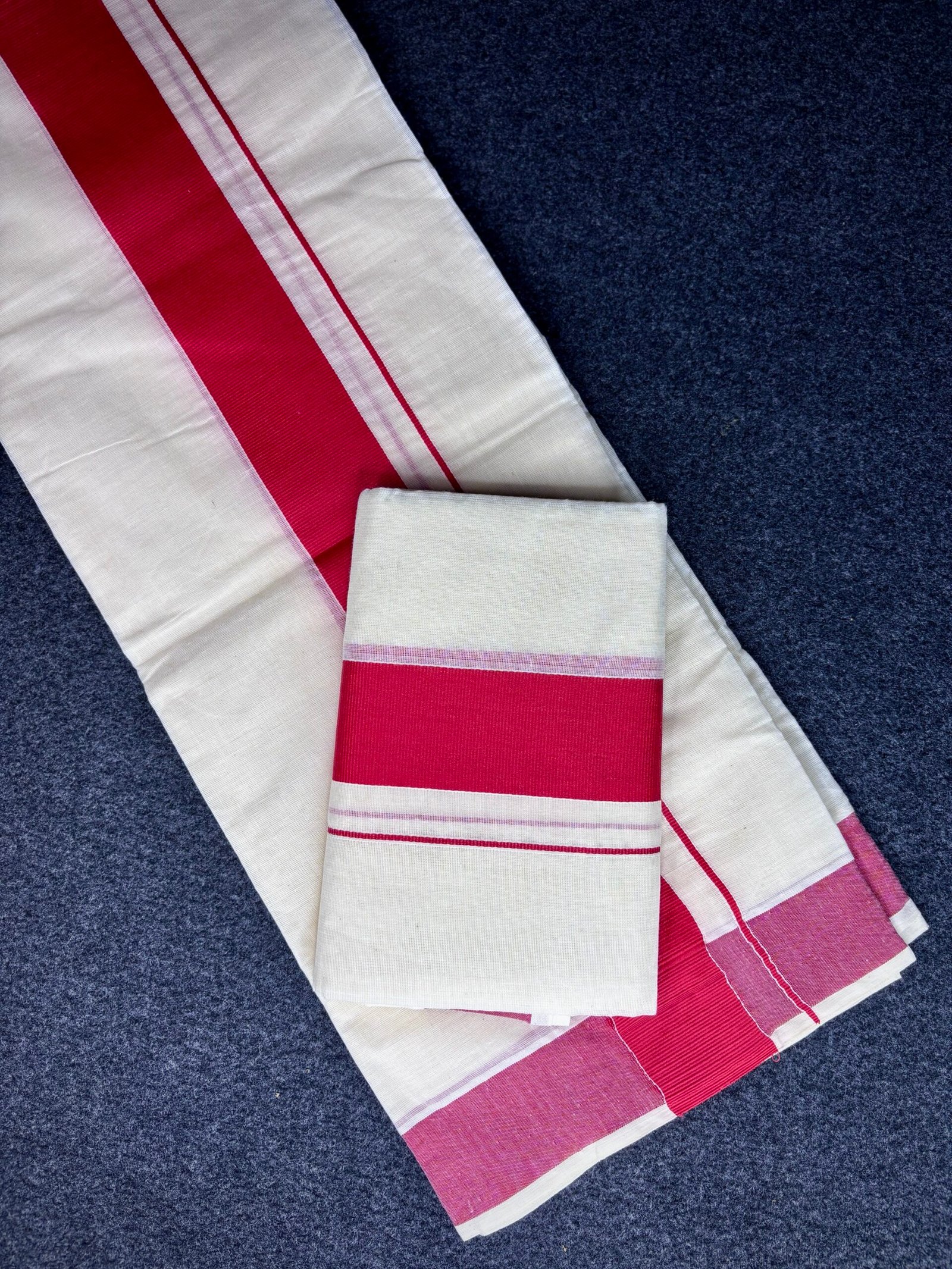 Color: Classic Kerala white with traditional border accents