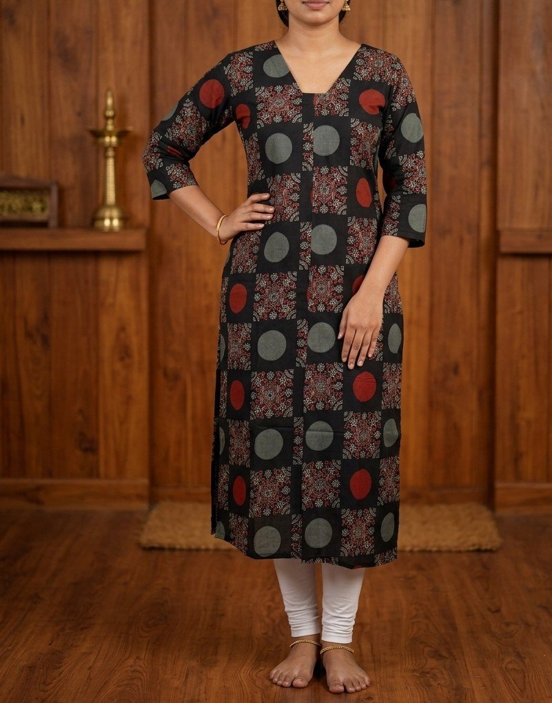 Add a touch of ethnic elegance to your wardrobe with this premium Ajrak cotton kurti, designed for both comfort and style. Crafted from soft, breathable Ajrak cotton fabric, this kurti showcases timeless prints with a modern silhouette.